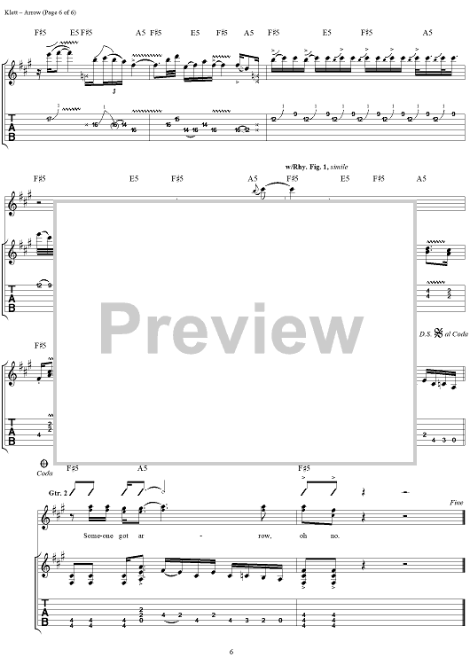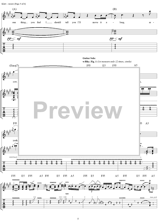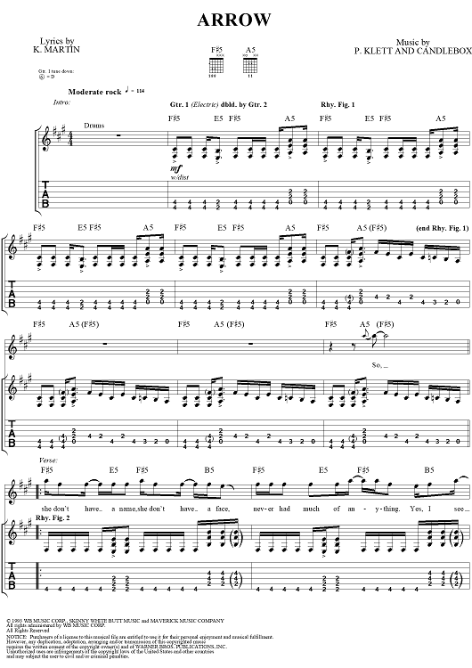 Digital Sheet Music for Arrow by Kevin Martin, Peter Klett, Candlebox scored for Guitar Tab/Vocal; id:112487