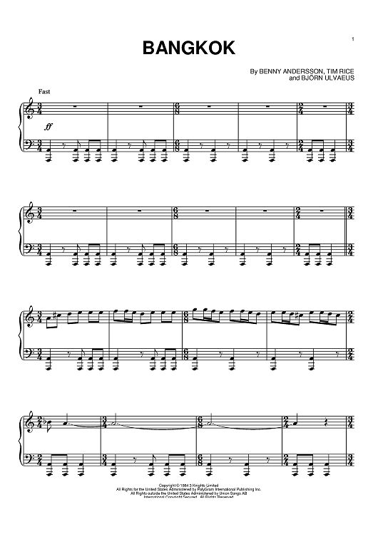 Digital Sheet Music for Bangkok by Tim Rice, Benny Andersson, Bjorn Ulvaeus, Elaine Paige, Steve Vai scored for Piano; id:381552