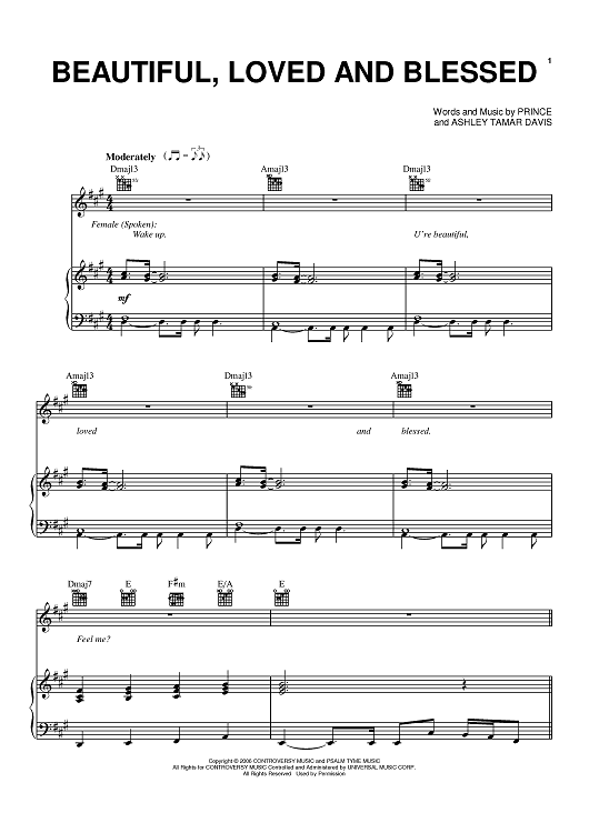 Digital Sheet Music for Beautiful, Loved And Blessed by Prince, Támar Davis scored for Piano/Vocal/Chords; id:391060