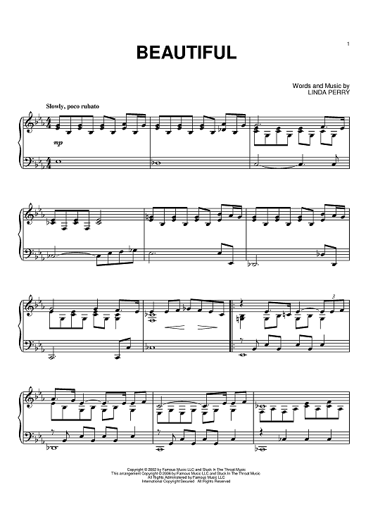 Digital Sheet Music for Beautiful by Linda Perry, Christina Aguilera scored for Piano; id:390896
