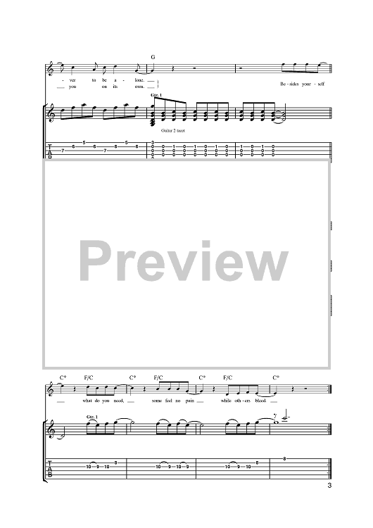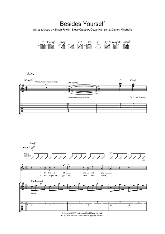 Digital Sheet Music for Besides Yourself by Steve Cradock, Simon Fowler, Oscar Harrison, Damon Minchella, Ocean Colour Scene scored for Guitar Tab; id:393869