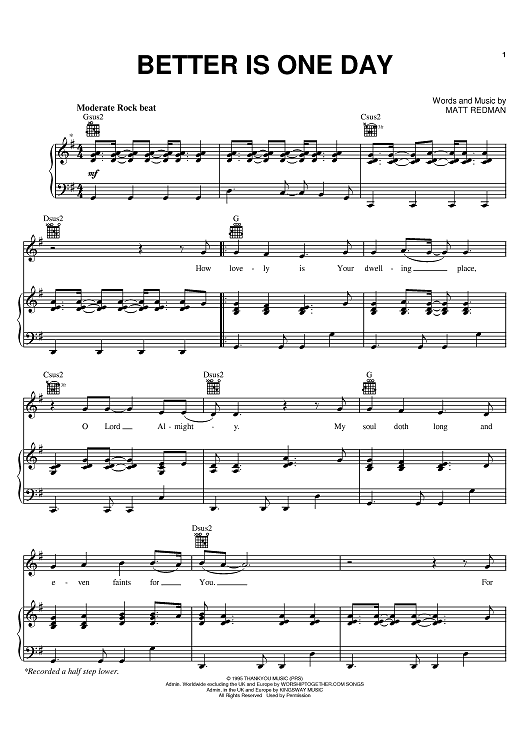 Digital Sheet Music for Better Is One Day by Matt Redman, Kutless, Passion Band scored for Piano/Vocal/Chords; id:383307
