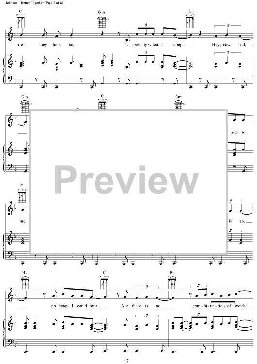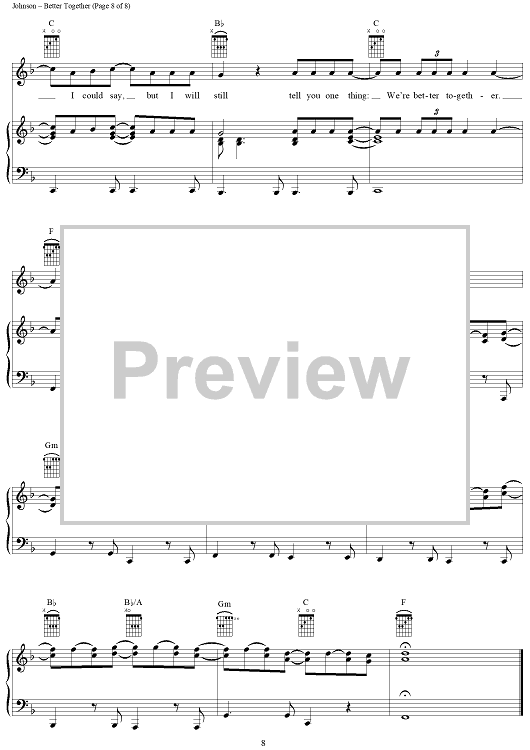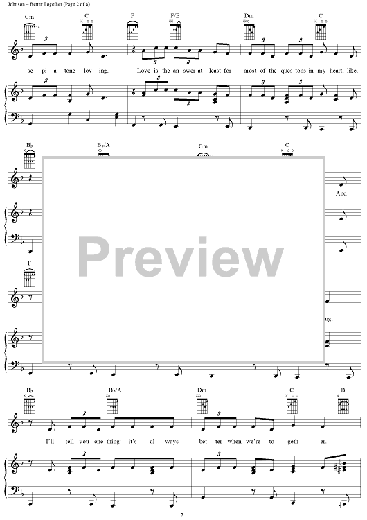 Digital Sheet Music for Better Together by Jack Johnson scored for Piano/Vocal/Chords; id:389788