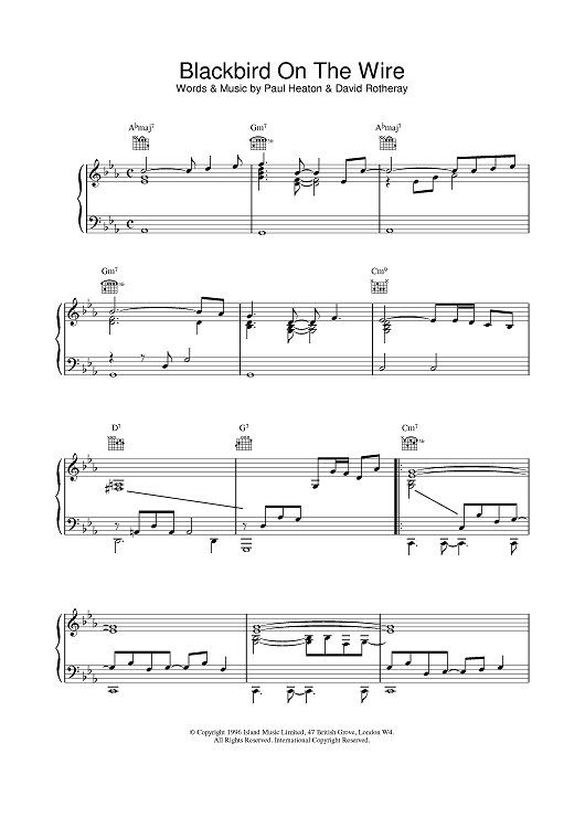 Digital Sheet Music for Blackbird On The Wire by The Beautiful South scored for Piano/Vocal/Chords; id:376324