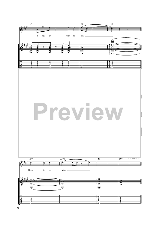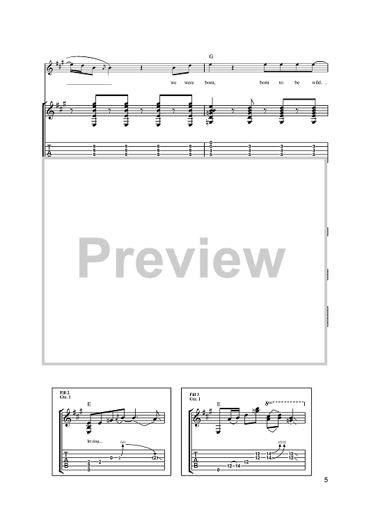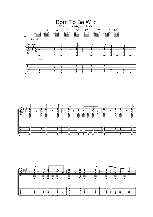 Digital Sheet Music for Born To Be Wild by Steppenwolf, Mars Bonfire scored for Guitar Tab; id:391612