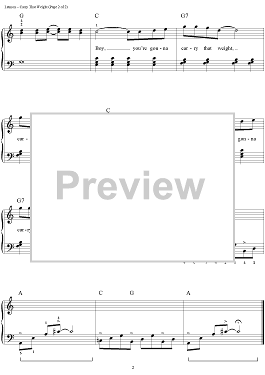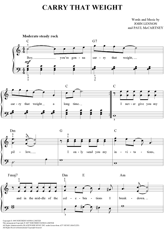 Digital Sheet Music for Carry That Weight by Paul McCartney, The Beatles, John Lennon scored for Easy Piano/Vocal/Chords; id:448112