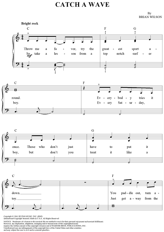 Digital Sheet Music for Catch a Wave by Brian Wilson, The Beach Boys scored for Easy Piano/Vocal; id:120217