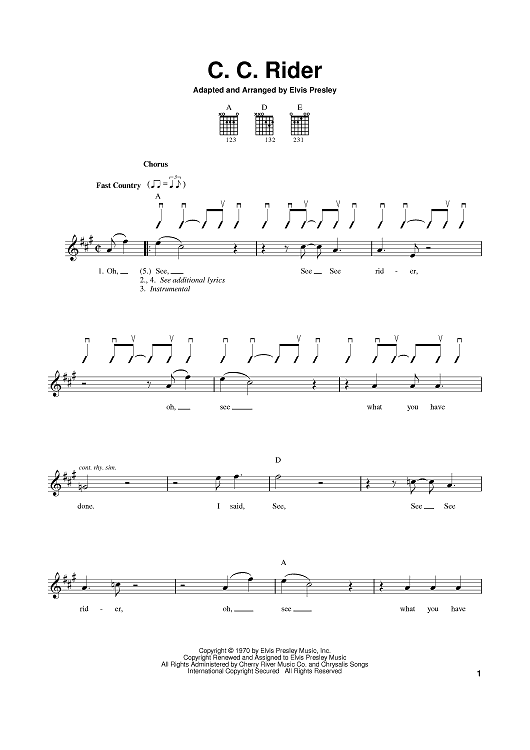 Digital Sheet Music for C.C. Rider by Elvis Presley scored for Lead Sheet with Guitar Grids; id:372141