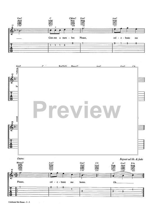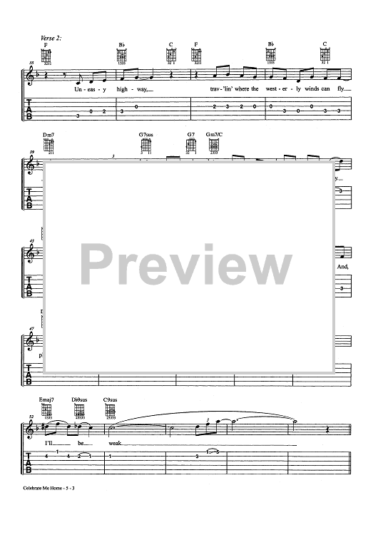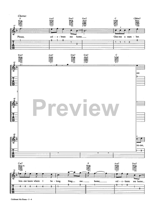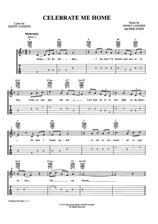 Digital Sheet Music for Celebrate Me Home by Bob James, Kenny Loggins scored for Easy Guitar Tab/Vocal/Chords; id:463657