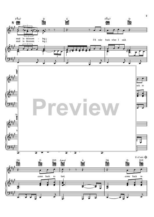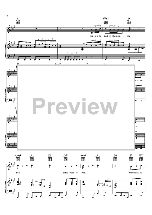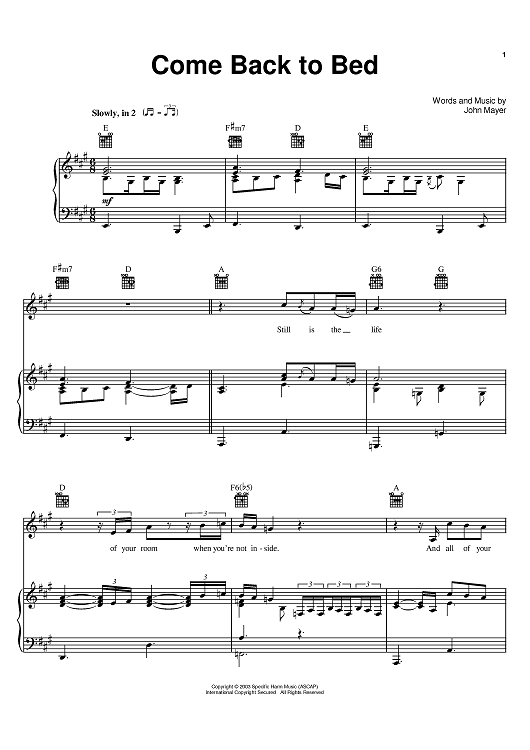 Digital Sheet Music for Come Back To Bed by John Mayer scored for Piano/Vocal/Chords; id:373511