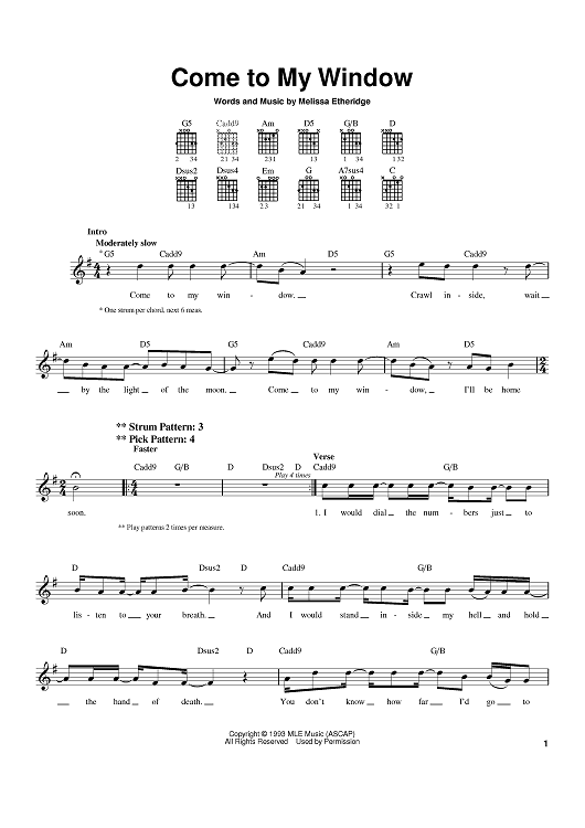 "Come To My Window" Sheet Music by Melissa Etheridge
