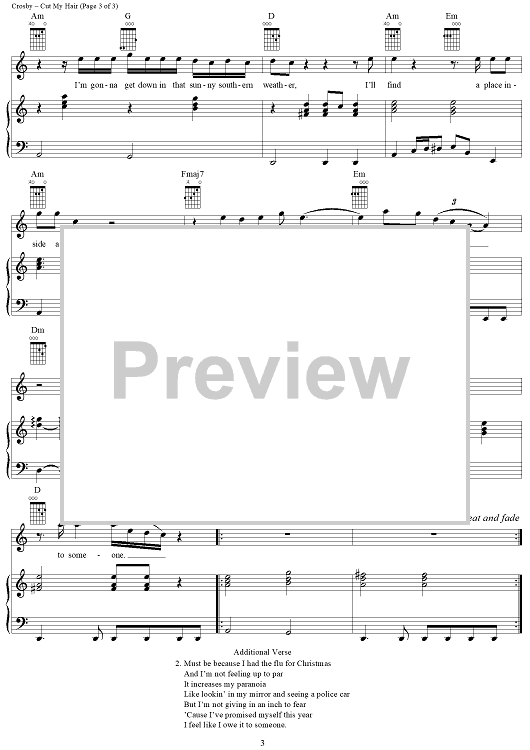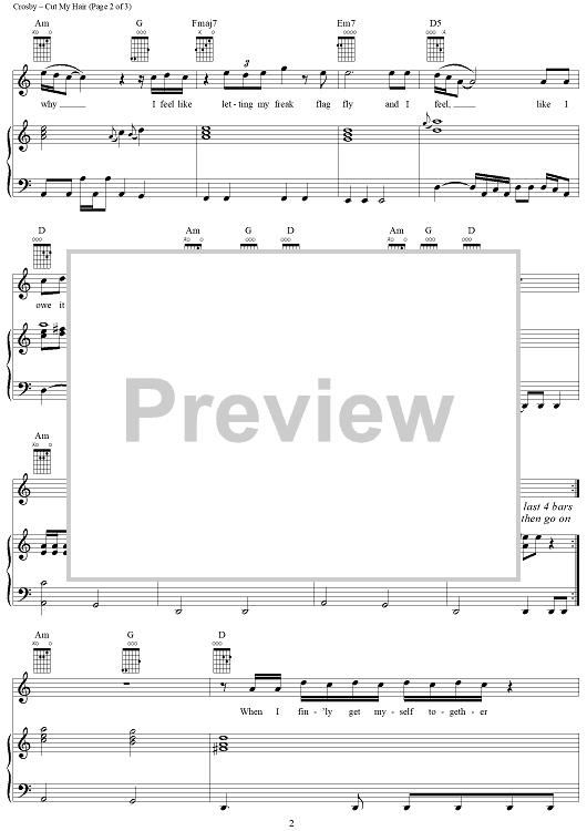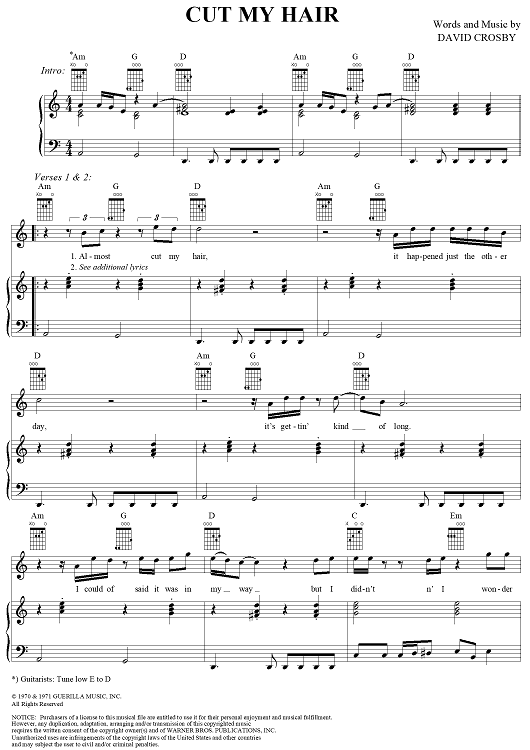 Digital Sheet Music for Cut My Hair by David Crosby, Crosby, Stills, Nash & Young scored for Piano/Vocal/Chords; id:271814