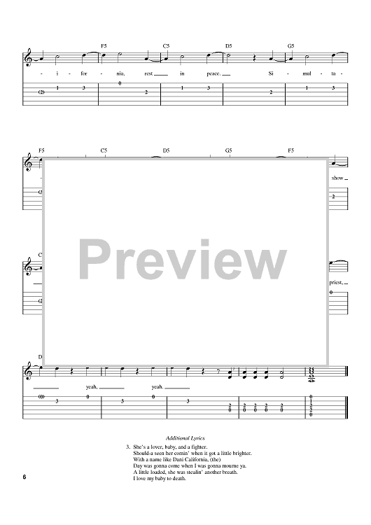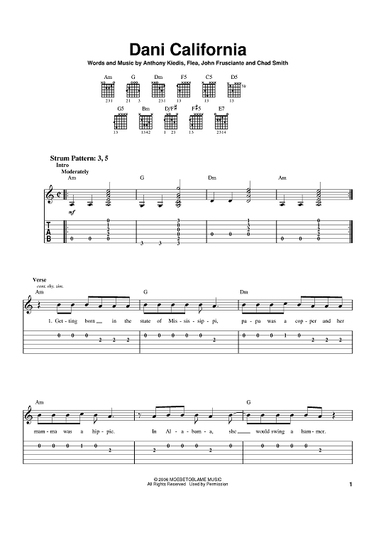 Digital Sheet Music for Dani California by Flea, John Frusciante, Anthony Kiedis, Red Hot Chili Peppers, Chad Smith scored for Easy Guitar Tab; id:396112
