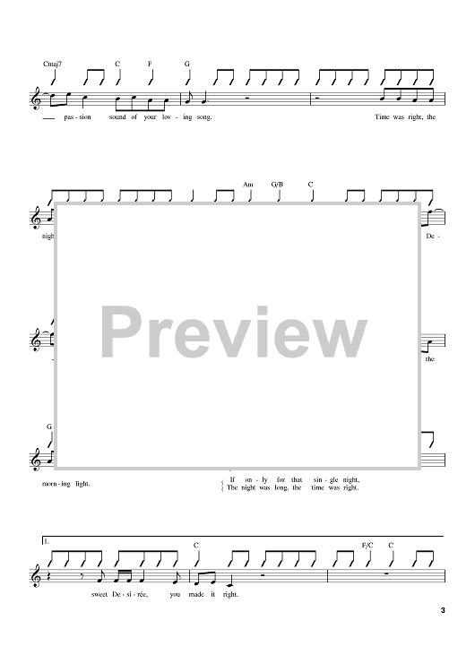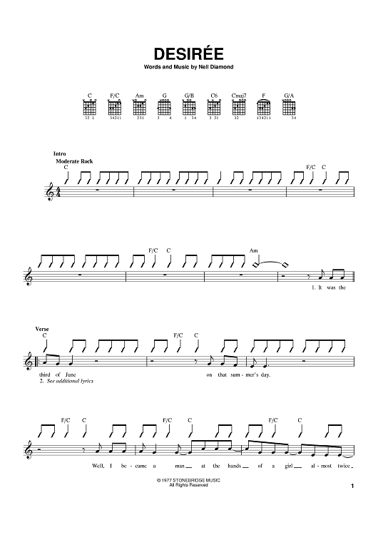 Digital Sheet Music for Desiree by Neil Diamond scored for Lead Sheet with Guitar Grids; id:382188