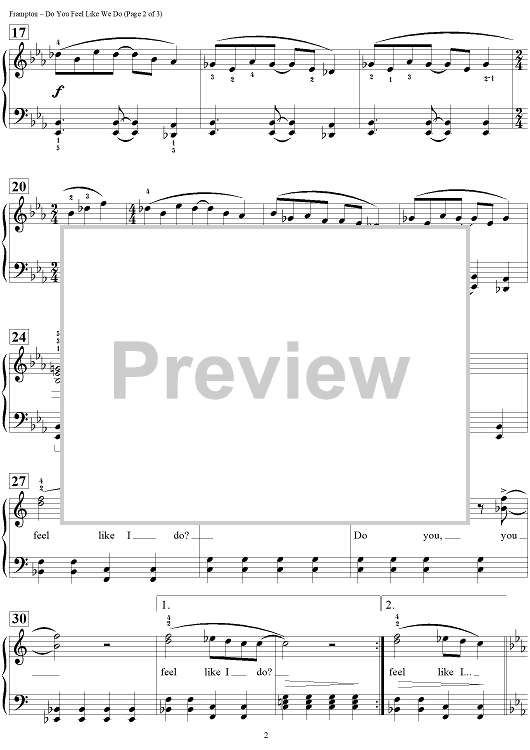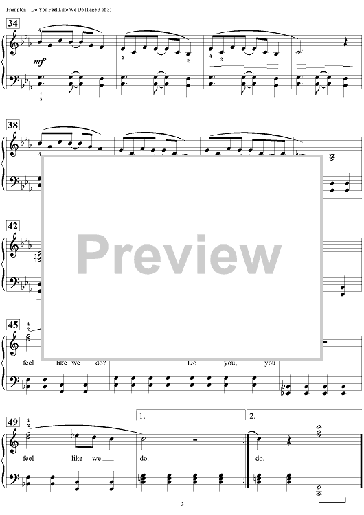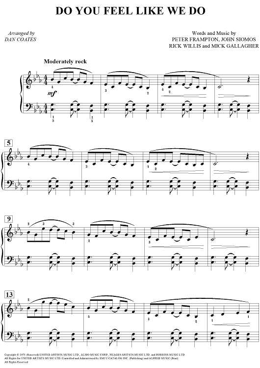Digital Sheet Music for Do You Feel Like We Do by Dan Coates, Peter Frampton, John Siomos, Mick Gallagher, Rick Willis scored for Piano; id:462606