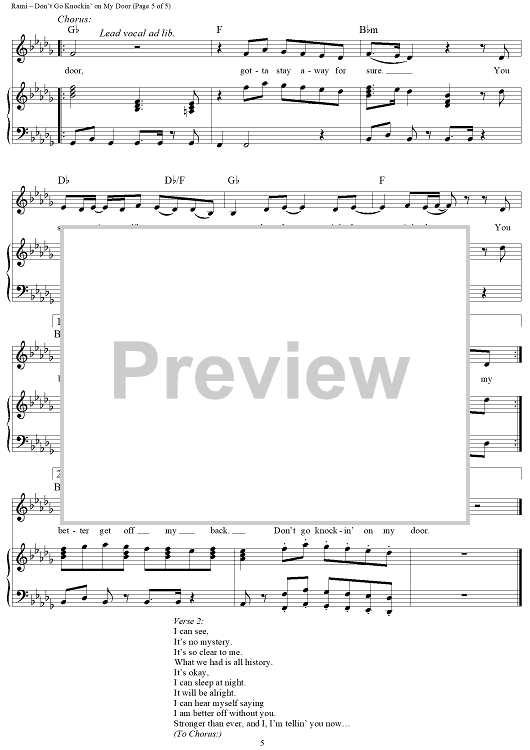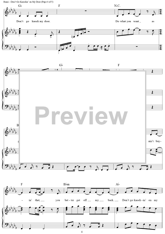 Digital Sheet Music for Don't Go Knockin' on My Door by Max Martin, Jacob Schulze, Alexander Kronlund, Rami Yacoub, Britney Spears scored for Piano/Vocal/Chords; id:235233
