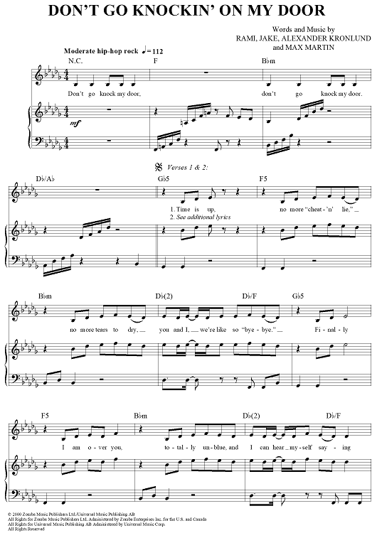 "Don't Go Knockin' on My Door" Sheet Music by Britney Spears