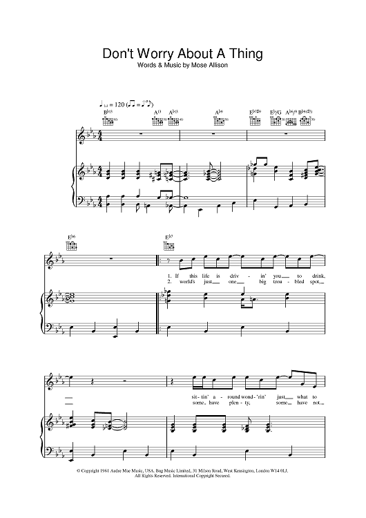 Digital Sheet Music for Don't Worry About A Thing by Van Morrison, Mose Allison scored for Piano/Vocal/Chords; id:382816