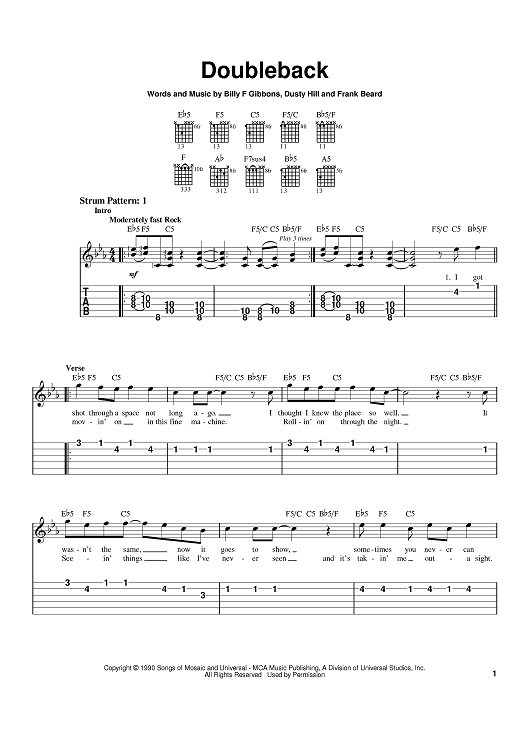 Digital Sheet Music for Doubleback by Billy Gibbons, Dusty Hill, Frank Beard, ZZ Top scored for Easy Guitar Tab; id:371192