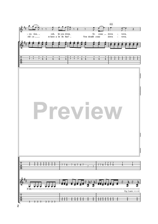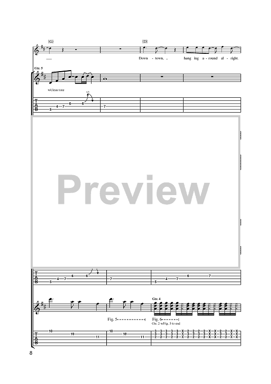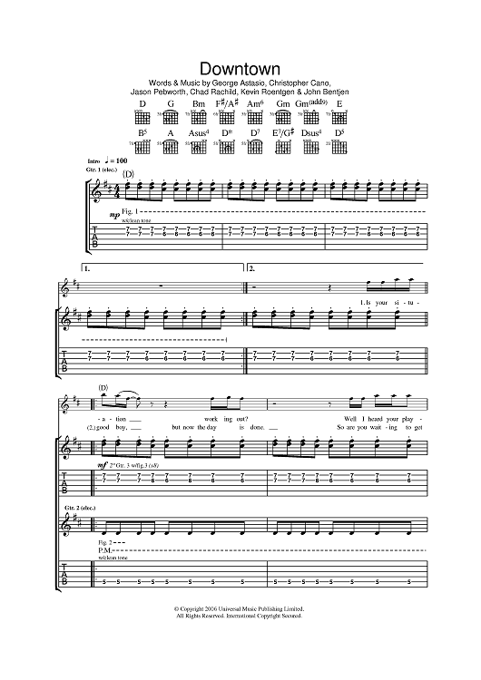 Digital Sheet Music for Downtown by George Astasio, John Bentjen, Christopher Cano, Orson, Jason Pebworth, Chad Rachild, Kevin Roentgen scored for Guitar Tab; id:391421