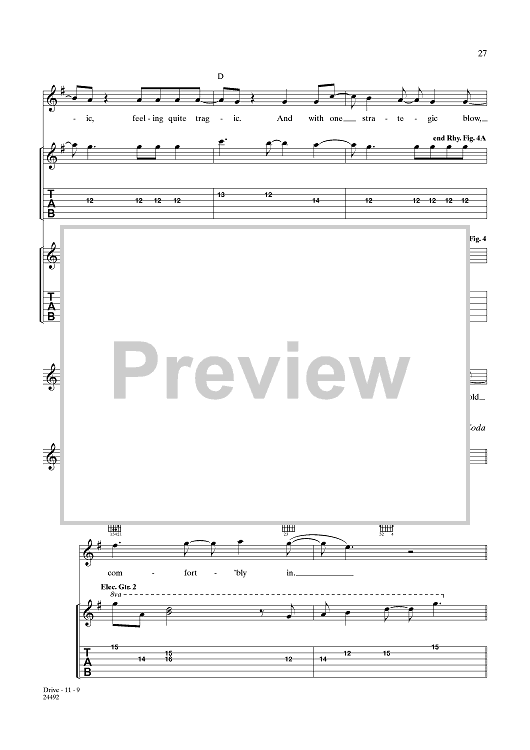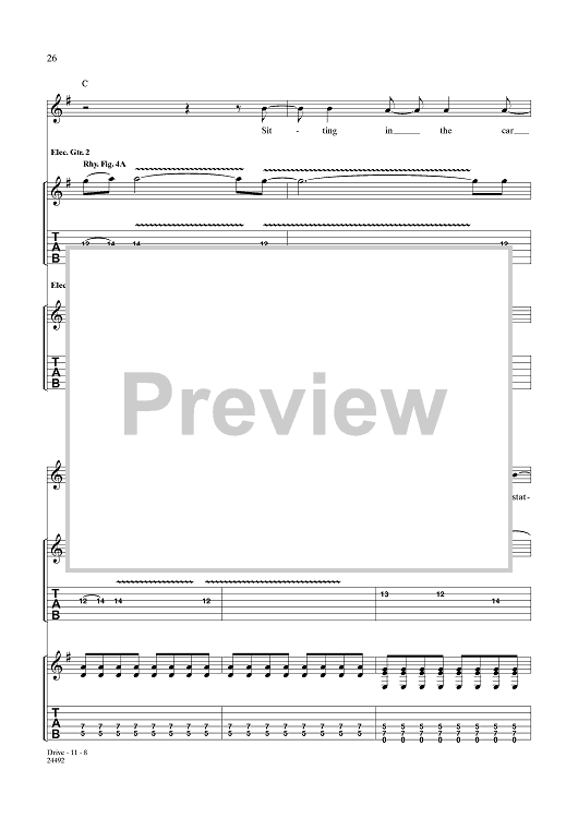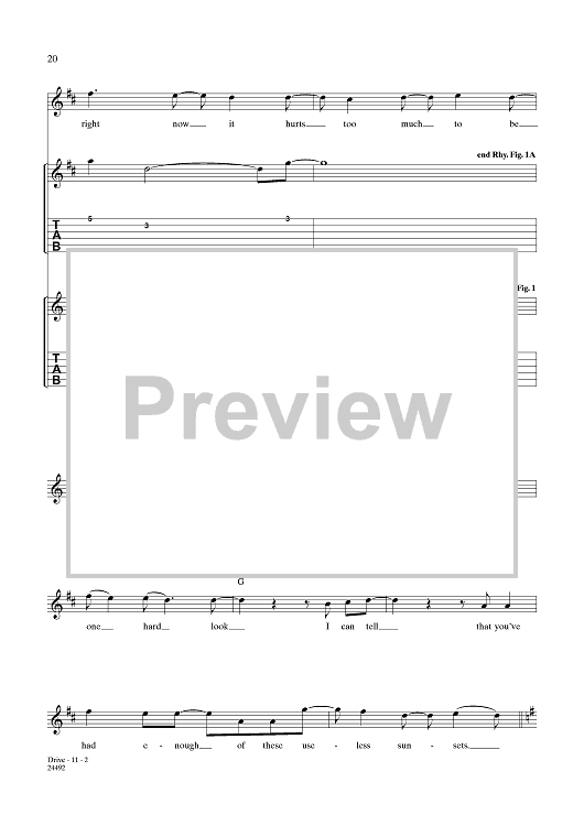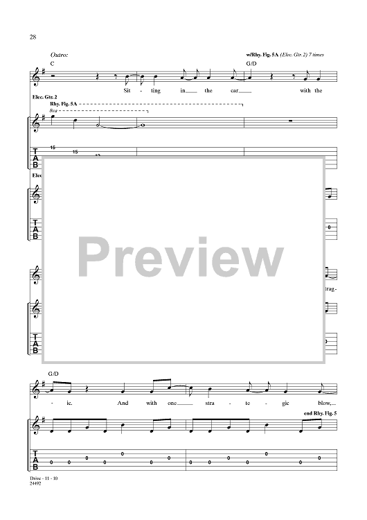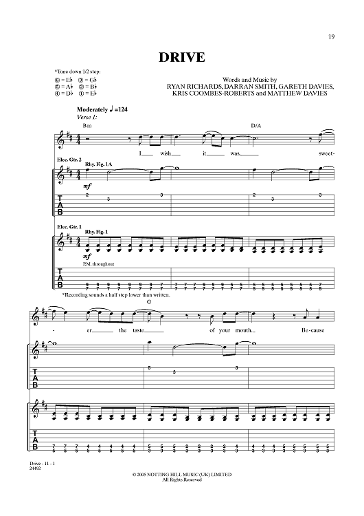 Digital Sheet Music for Drive by Funeral for a Friend, Ryan Richards, Darran Smith, Gareth Davies, Kris Coombes-Roberts, Matthew Davies scored for Guitar Tab/Vocal; id:359907