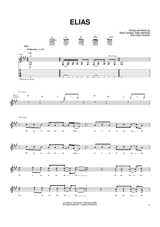 Digital Sheet Music for Elias by Brad Corrigan, Dispatch, Pete Francis Heimbold, Chad Urmston scored for Guitar Tab; id:372983