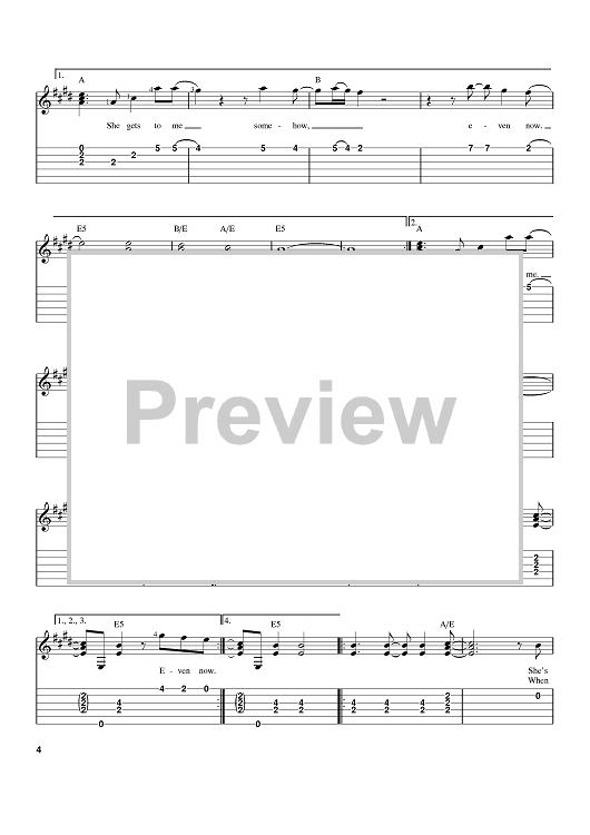 Digital Sheet Music for Even Now by Bob Seger scored for Easy Guitar Tab; id:372007
