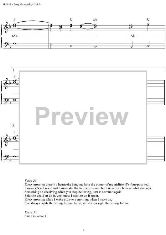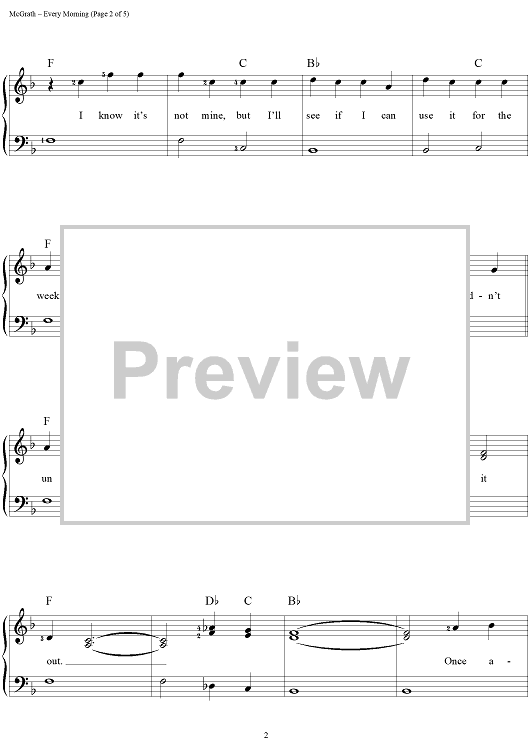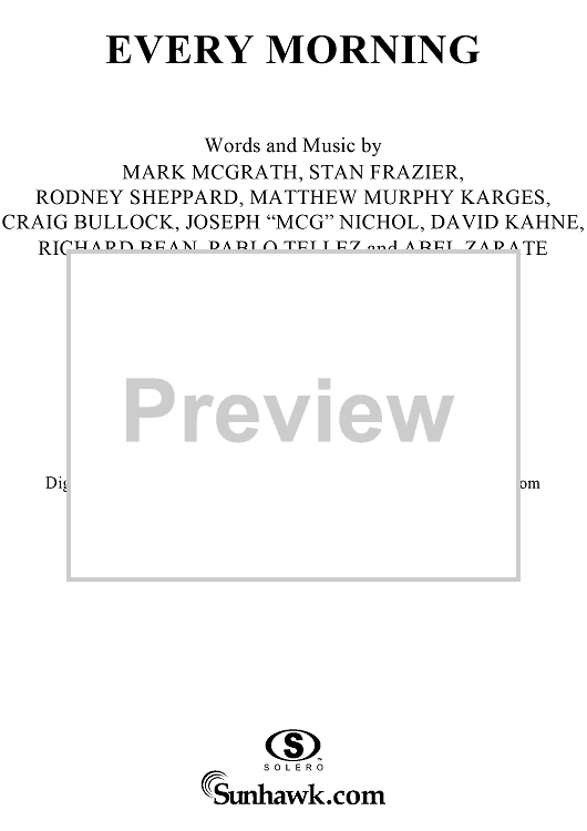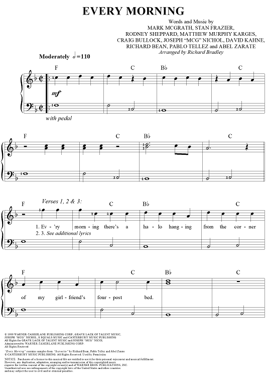 Digital Sheet Music for Every Morning by Richard Bradley, David Kahne, Mark McGrath, Stan Frazier, Rodney Sheppard, Craig Bullock, Richard Bean, Pablo Tellez, Abel Zarate, Murphy Karges, Joseph Nichol, Sugar Ray scored for Easy Piano/Vocal; id:252380