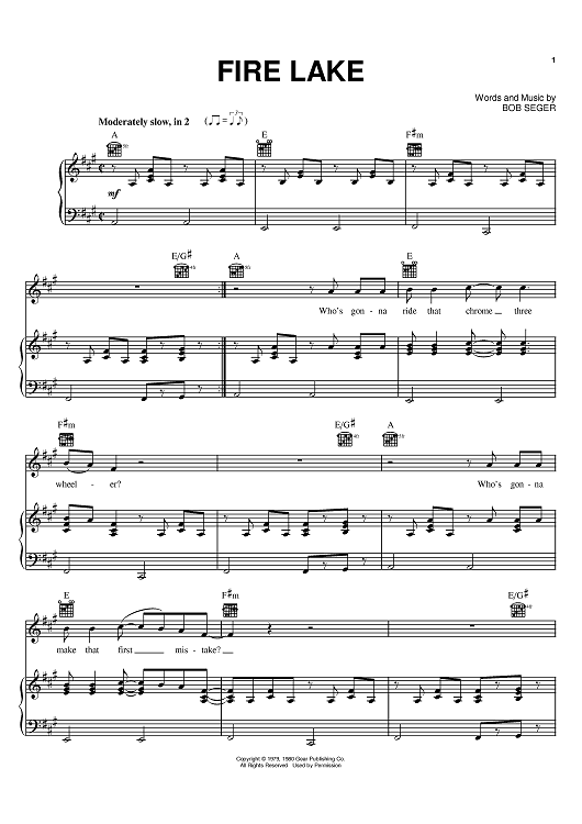 Digital Sheet Music for Fire Lake by Bob Seger scored for Piano/Vocal/Chords; id:373423