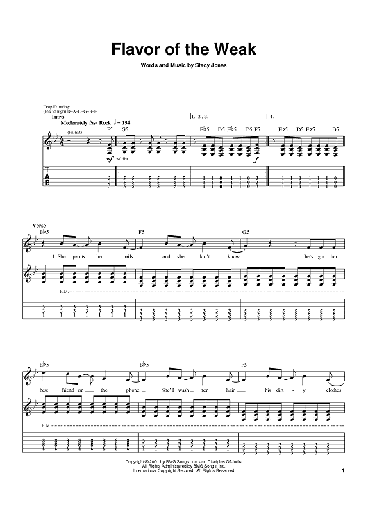Digital Sheet Music for Flavor Of The Weak by Stacy Jones scored for Guitar Tab; id:374230