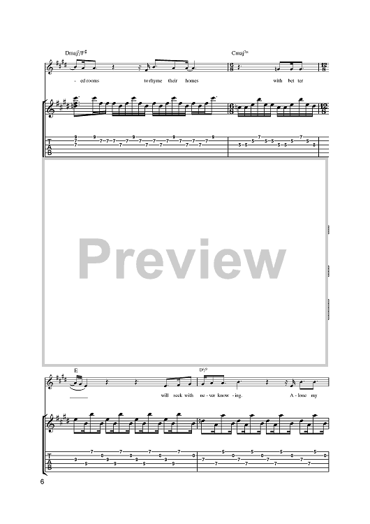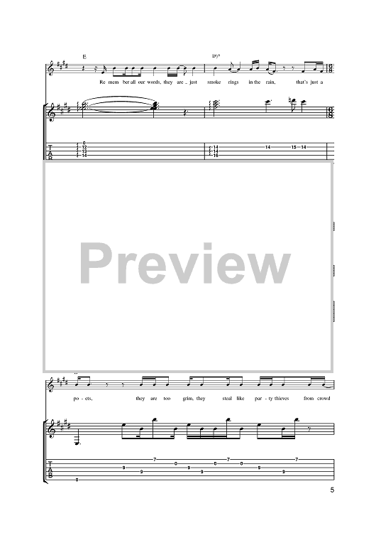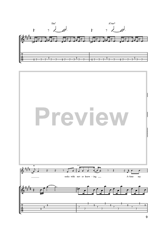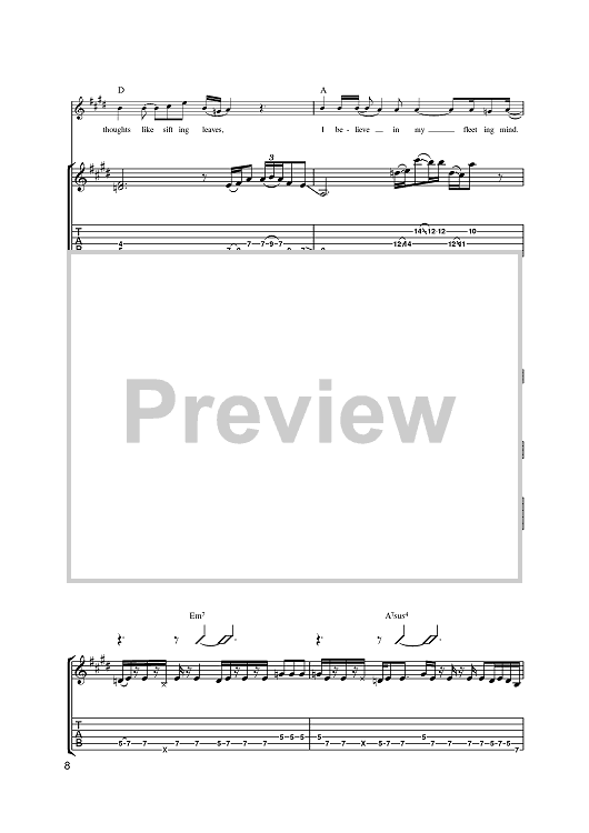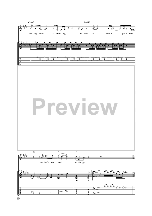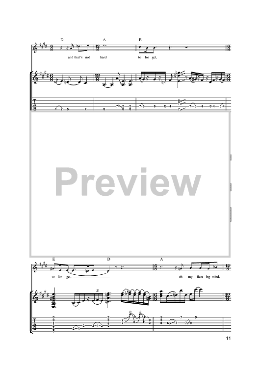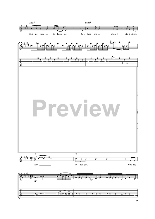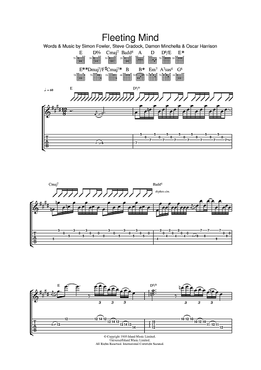 Digital Sheet Music for Fleeting Mind by Steve Cradock, Simon Fowler, Oscar Harrison, Damon Minchella, Ocean Colour Scene, x scored for Guitar Tab; id:393856