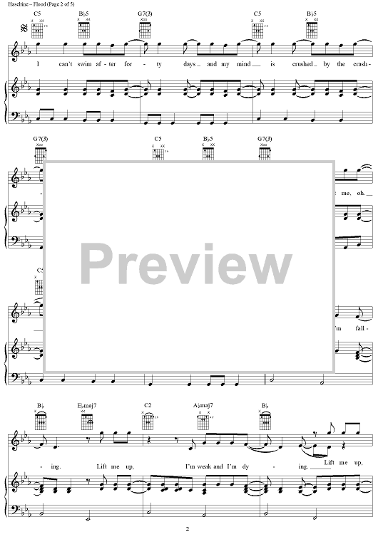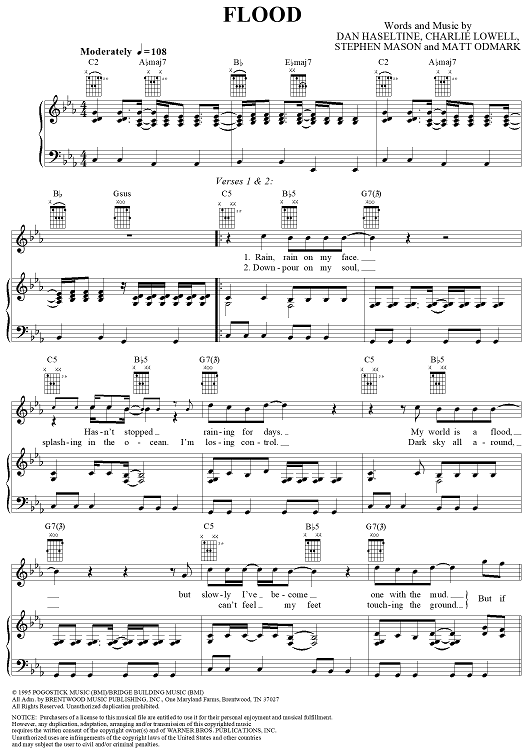 Digital Sheet Music for Flood by Dan Haseltine, Matt Odmark, Stephen Mason, Charlie Lowell scored for Piano/Vocal/Chords; id:267351