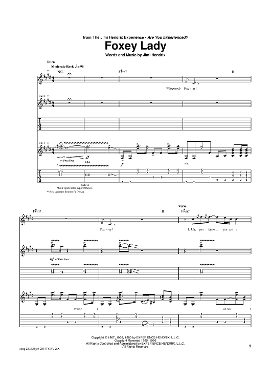 "Foxey Lady" Sheet Music by Jimi Hendrix
