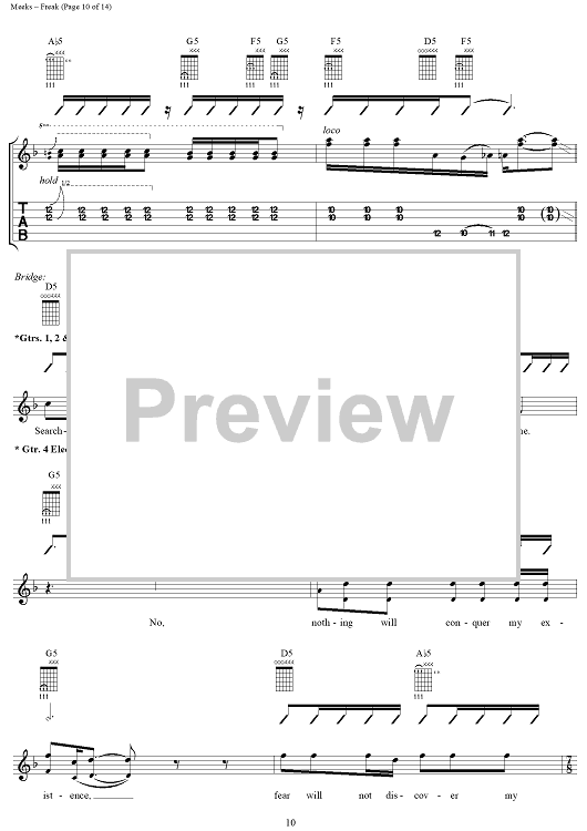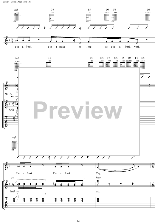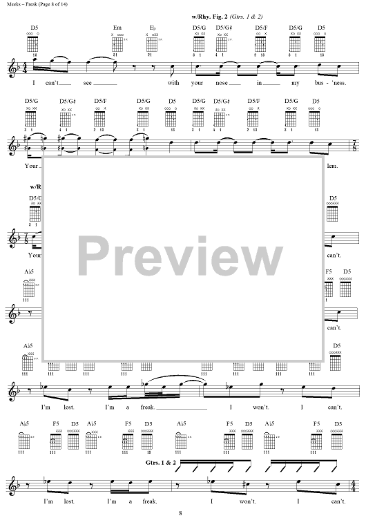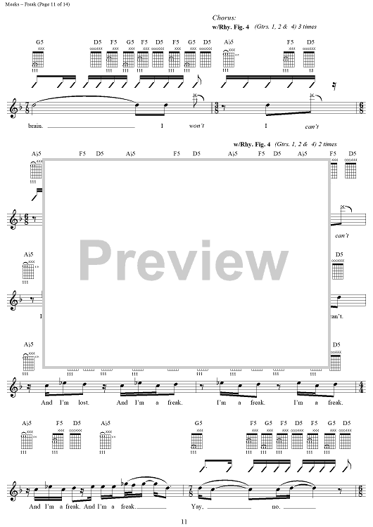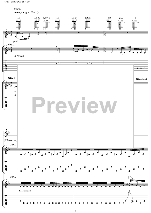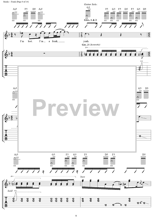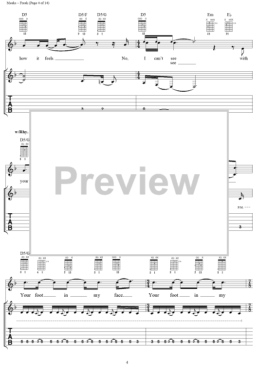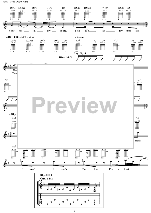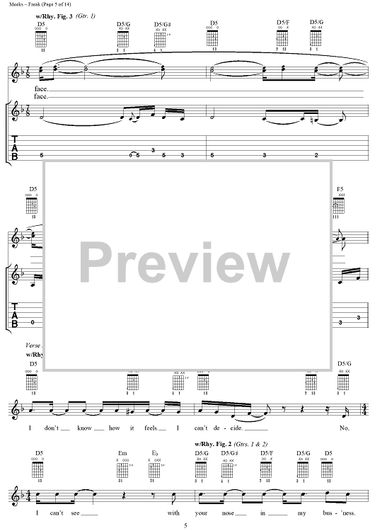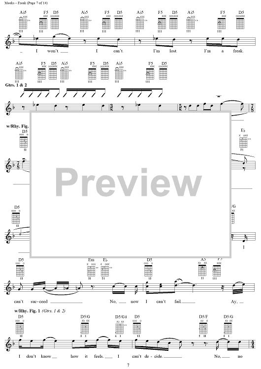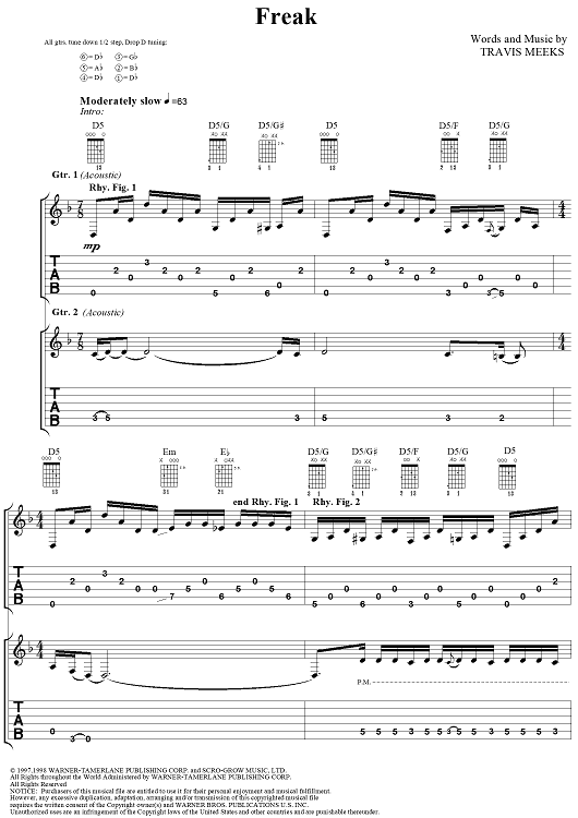 Digital Sheet Music for Freak by Travis Meeks, Days of the New scored for Guitar Tab/Vocal; id:109365