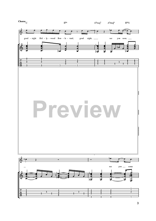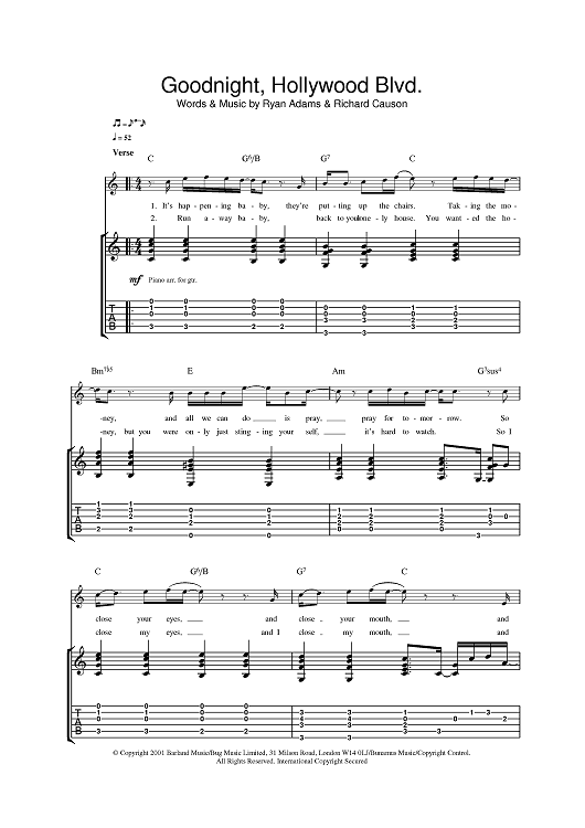 Digital Sheet Music for Goodnight, Hollywood Blvd by Ryan Adams, Richard Causon scored for Guitar Tab; id:384205