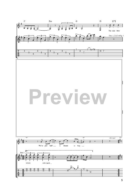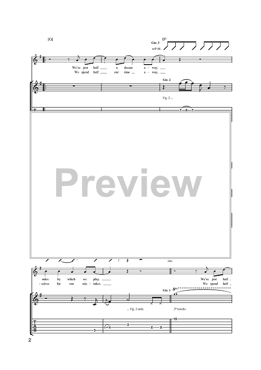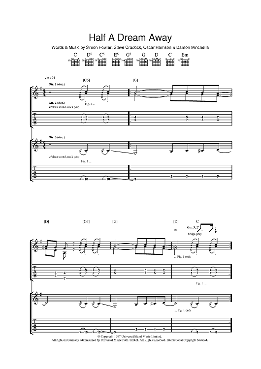 Digital Sheet Music for Half A Dream Away by Steve Cradock, Simon Fowler, Oscar Harrison, Damon Minchella, Ocean Colour Scene scored for Guitar Tab; id:393874