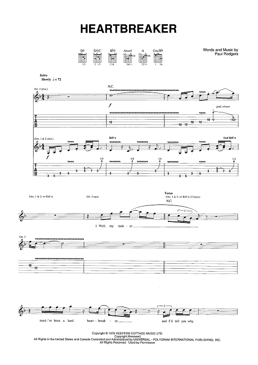Digital Sheet Music for Heartbreaker by Paul Rodgers, Joe Bonamassa scored for Guitar Tab/Vocal/Chords; id:465530