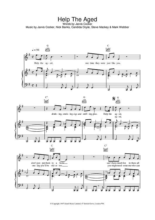 Digital Sheet Music for Help The Aged by Pulp scored for Piano/Vocal/Chords; id:376555