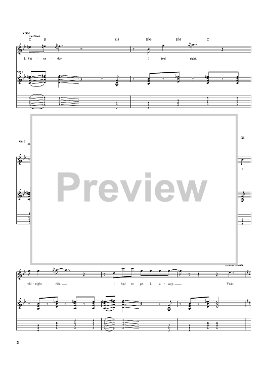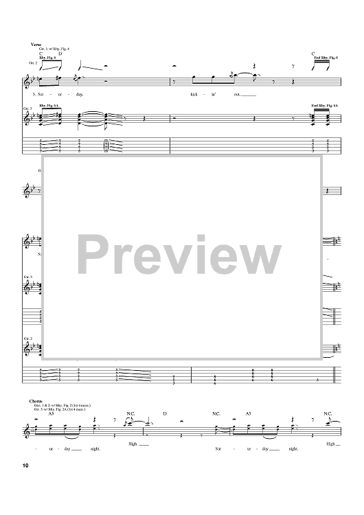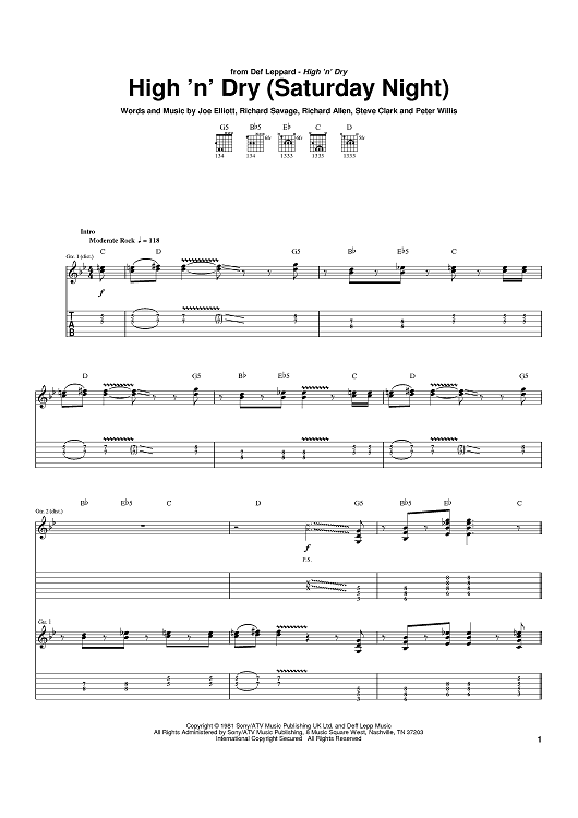 Digital Sheet Music for High 'N' Dry (Saturday Night) by Steve Clark, Def Leppard, Joe Elliott, Richard Allen, Rick Savage, Pete Willis scored for Guitar Tab; id:392230