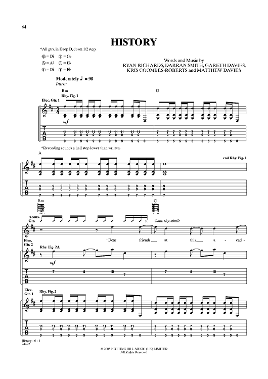 Digital Sheet Music for History by Funeral for a Friend, Ryan Richards, Darran Smith, Gareth Davies, Kris Coombes-Roberts, Matthew Davies scored for Guitar Tab/Vocal; id:359903