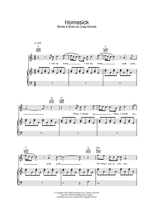 Digital Sheet Music for Homesick by Craig Nicholls, The Vines scored for Piano/Vocal/Chords; id:382851