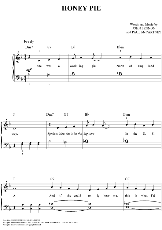 Digital Sheet Music for Honey Pie by Paul McCartney, The Beatles, John Lennon scored for Easy Piano/Vocal/Chords; id:449556