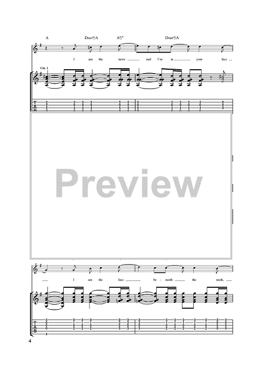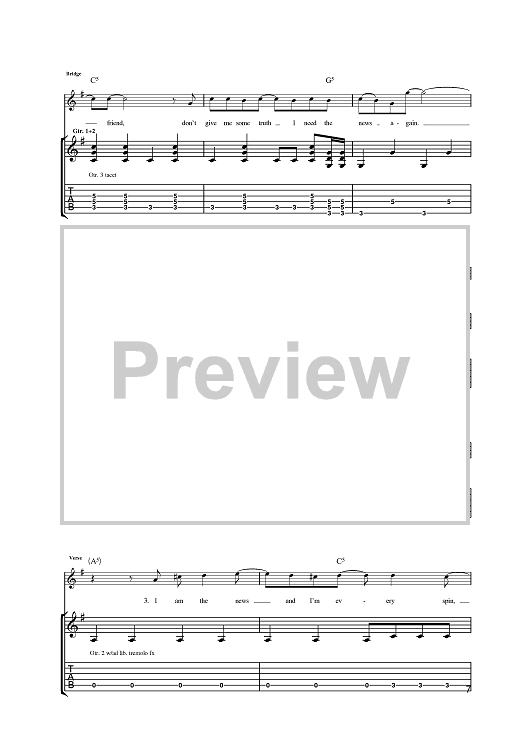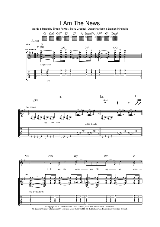 Digital Sheet Music for I Am The News by Steve Cradock, Simon Fowler, Oscar Harrison, Damon Minchella, Ocean Colour Scene scored for Guitar Tab; id:393883