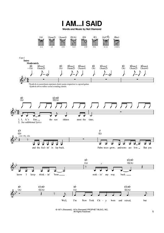 Digital Sheet Music for I Am...I Said by Neil Diamond scored for Lead Sheet with Guitar Grids; id:382194