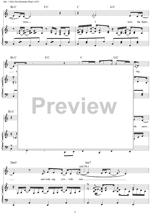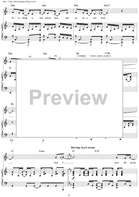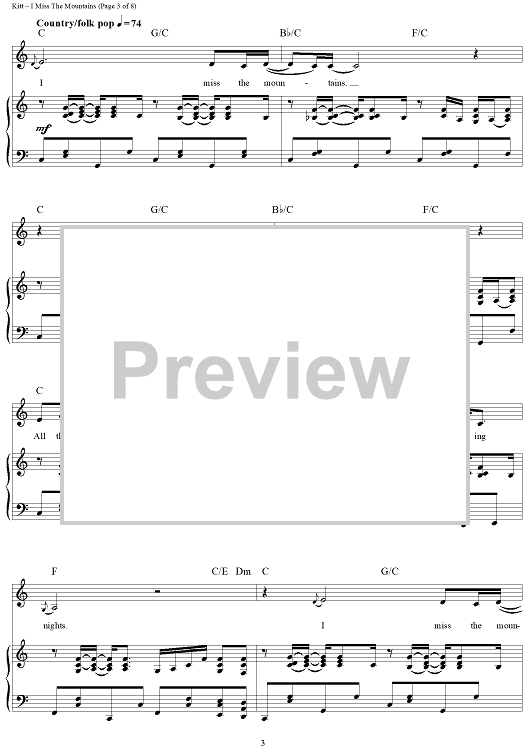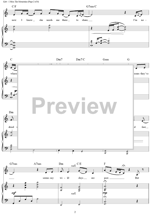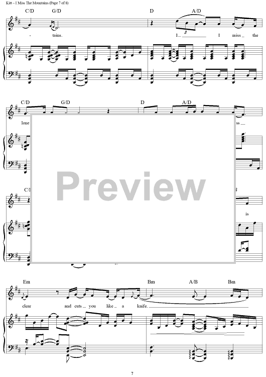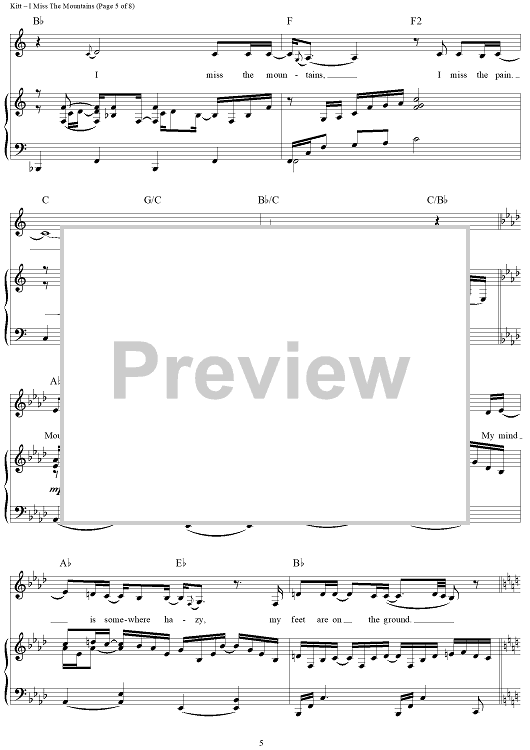 "I Miss The Mountains" Sheet Music by Tom Kitt