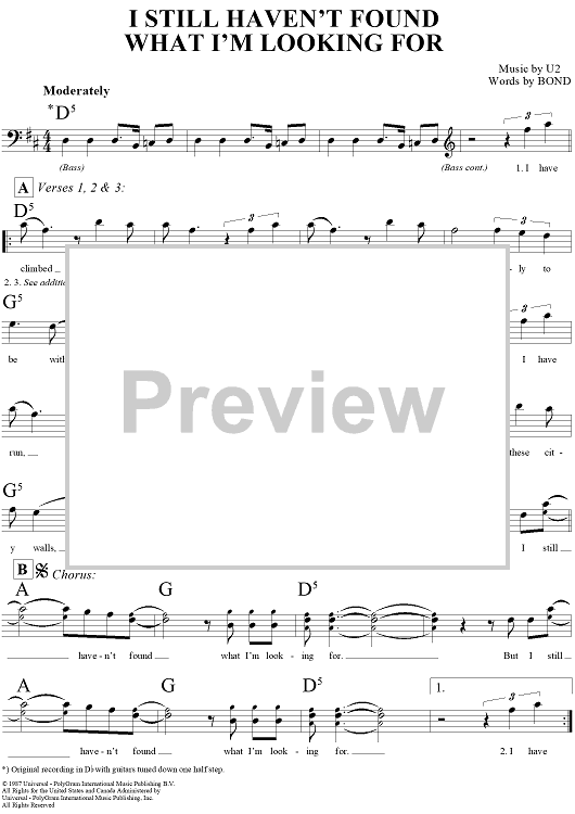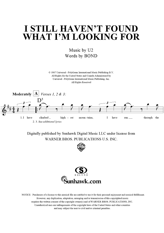 "I Still Haven't Found What I'm Looking For" Sheet Music by U2