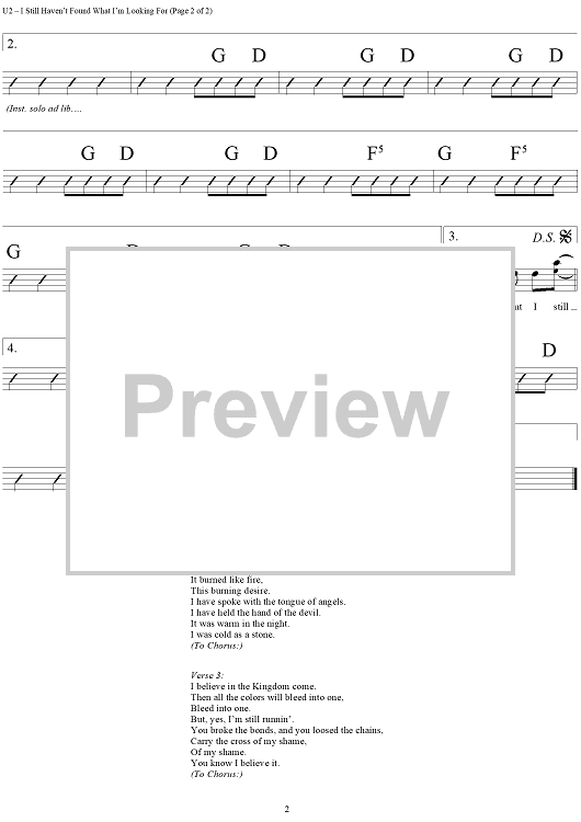 Digital Sheet Music for I Still Haven't Found What I'm Looking For by U2, Bono scored for Lead Sheet; id:293961