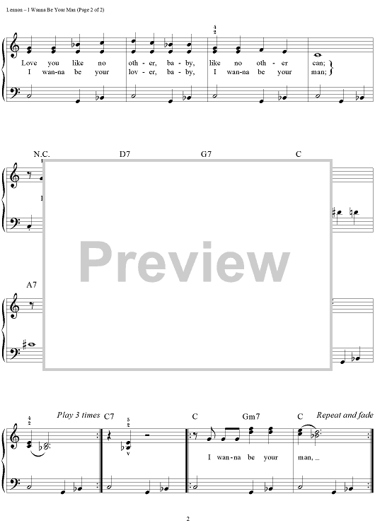 Digital Sheet Music for I Wanna Be Your Man by Paul McCartney, The Beatles, John Lennon scored for Easy Piano/Vocal/Chords; id:448650