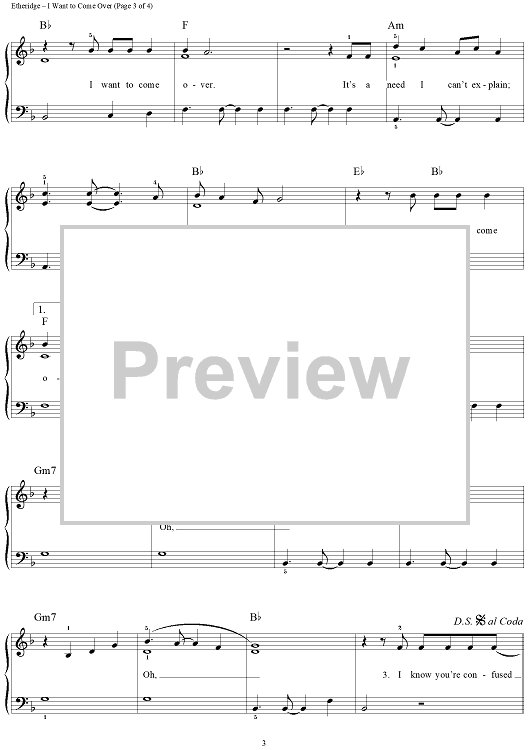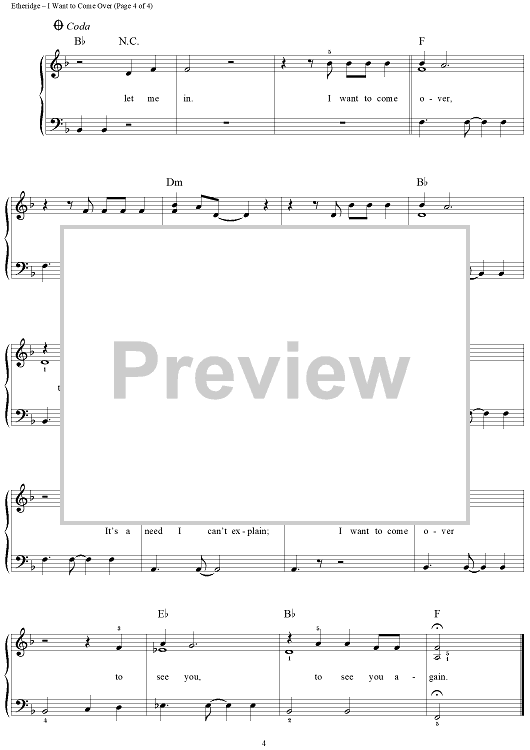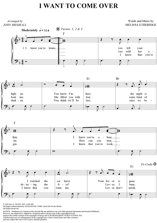 Digital Sheet Music for I Want to Come Over by Melissa Etheridge scored for Easy Piano/Vocal; id:240760