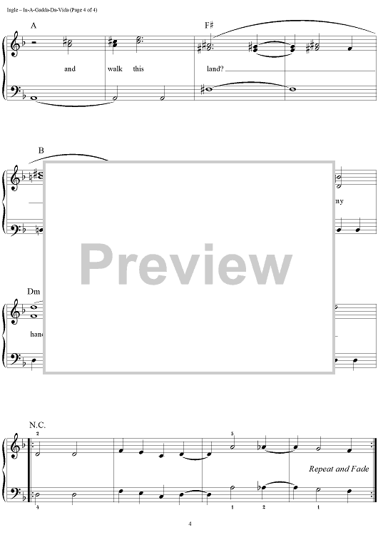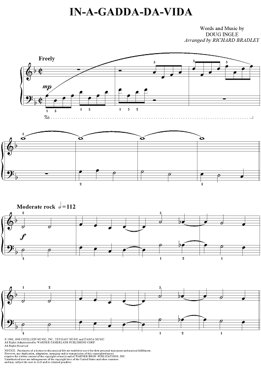 Digital Sheet Music for In-A-Gadda-Da-Vida by Richard Bradley, Doug Ingle, Iron Butterfly scored for Easy Piano/Vocal; id:283836